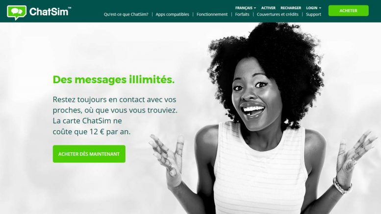 Pour cela, l’utilisateur devra acquérir une carte Sim proposée par l’opérateur. Toutefois, le petit plus de ChatSim, et que le prix restera invariable quel que soit le pays dans lequel vous partirez en vacances. Que ce soit en Europe, mais aussi en dehors de notre vieux continent. Ainsi, si vous décidez de partir à Miami ou à New York ou encore à Los Angeles cet été, l’échange de messages ne vous coûtera rien du tout. Uniquement un abonnement annuel de 12€/an.