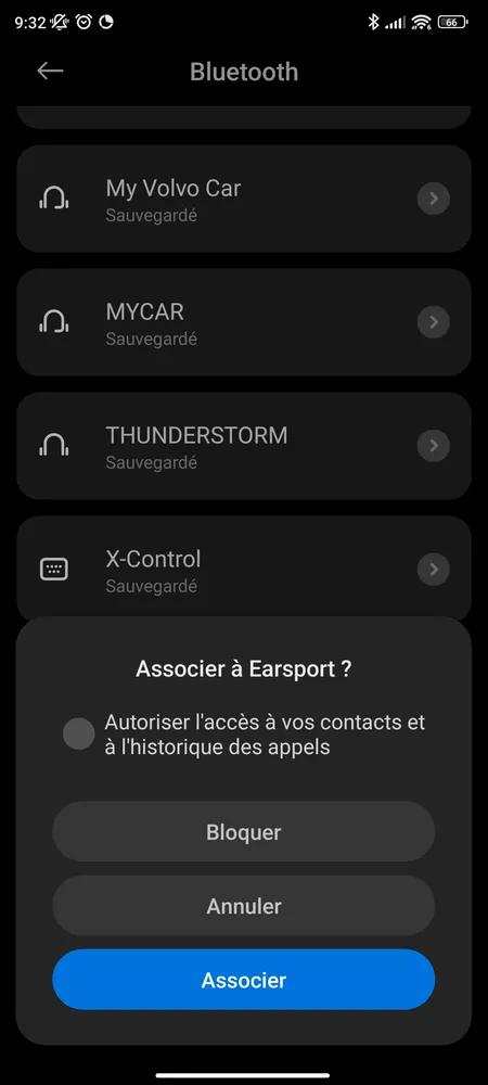 Une fois celui-ci chargé, il ne reste plus qu’a l’appareiller avec le téléphone. Pour l’appareiller, on appuie 3 seconde sur le bouton droit et on attend la petite voix qui annonce « pairing ». Ensuite, il suffit d’aller dans les paramètres Bluetooth du téléphone, de lancer une recherche Bluetooth et d’ajouter le « Earsport ». On entends alors la voix dire « connected ». Voilà, rien de plus simple.
