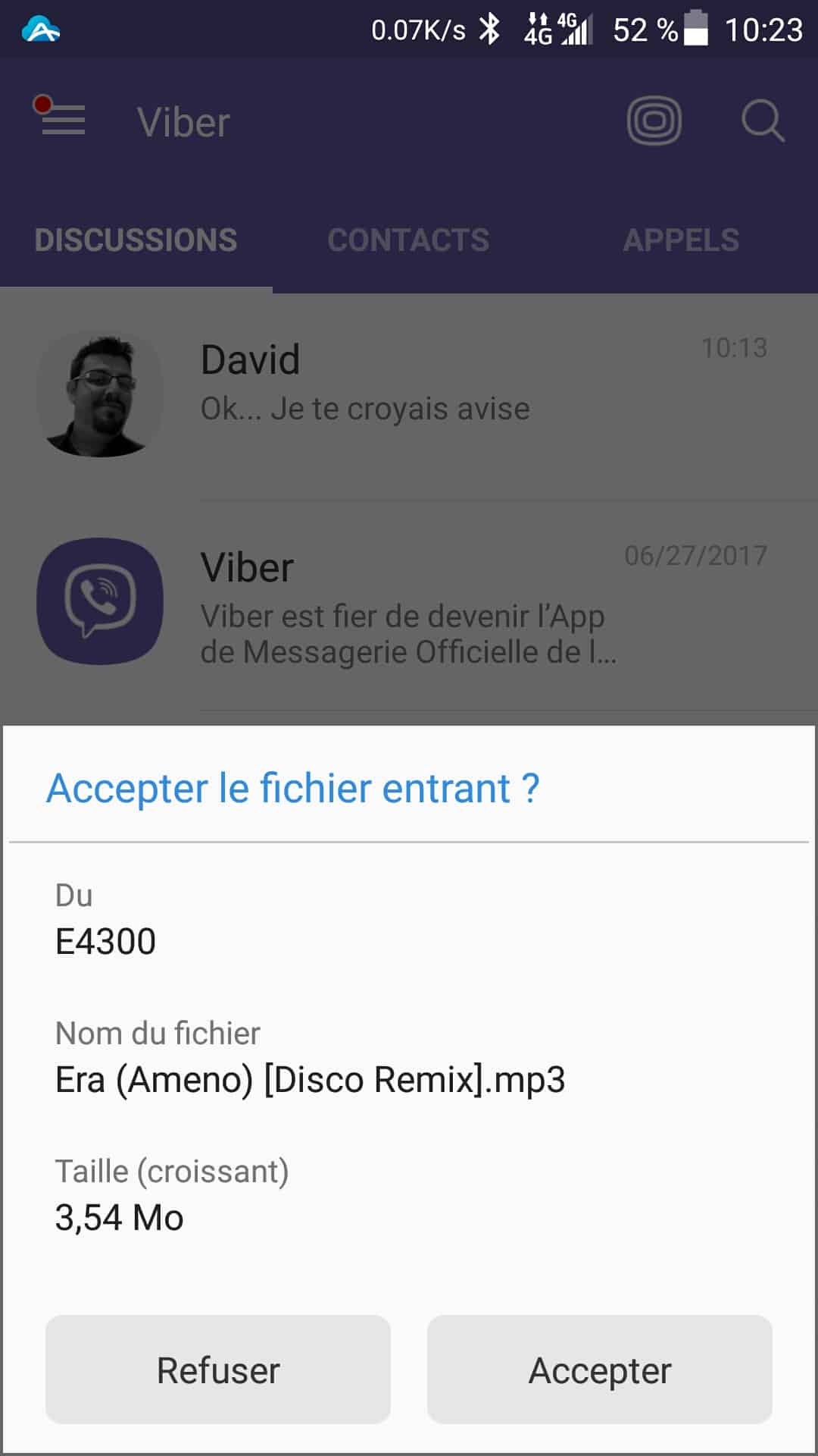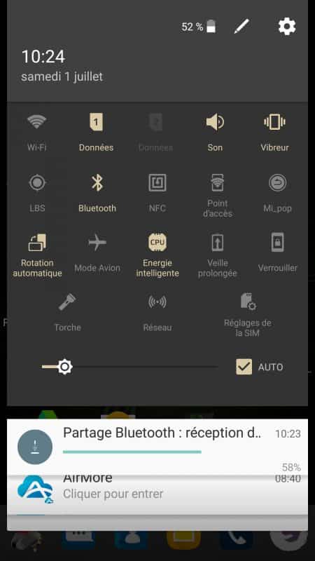 Un message est reçu pour chaque fichier. Ouvrez-le. Vos fichiers vont s’enregistrer dans le répertoire bluetooth à la racine de votre smartphone Vous pourrez les déplacer à votre guise avec votre gestionnaire de fichier. Vous pouvez alors supprimer les messages Bluetooth reçus.