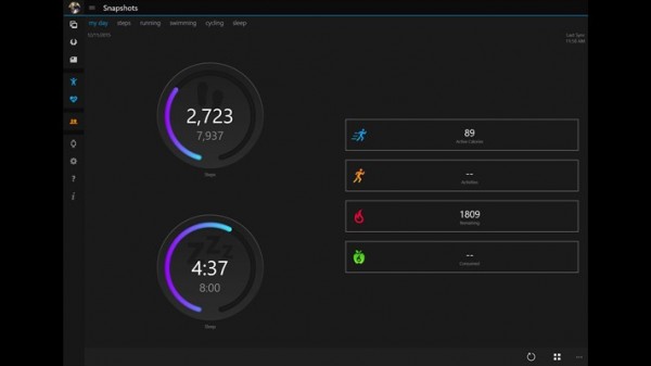 Cette application intègre également la fonctionnalité Microsoft Live Tiles permettant de visualiser directement sur son écran, les calories actives, les statistiques détaillées de la dernière activité, la durée et les cycles de sommeil, le nombre de pas effectués…