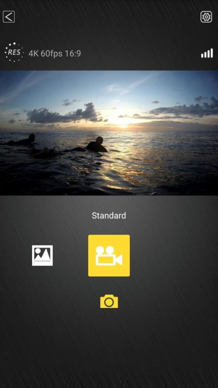 La manipulation de la caméra est assez semblable à ce que nous avons l’habitude de trouver sur les smartphones. On peut basculer entre les modes photo et vidéo par balayage horizontal. Les balayages verticaux donnant accès, soit aux différents modes de prises de vues, soit aux différents modes de connections, au verrouillage et à l’arrêt de la caméra. Les menus d’options et de régalages propres à chaque mode (photo ou vidéo) sont accessibles une fois le mode sélectionné.