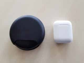 Le design du boitier de recharge lui est neutre, si on le compare avec celui de Apple. Effectivement là on voit le travail de finition effectué chez Apple, maintenant comme pour le son on est pas dans le même budget et si on compare le ratio budget/design le produit s’en sort pas mal.