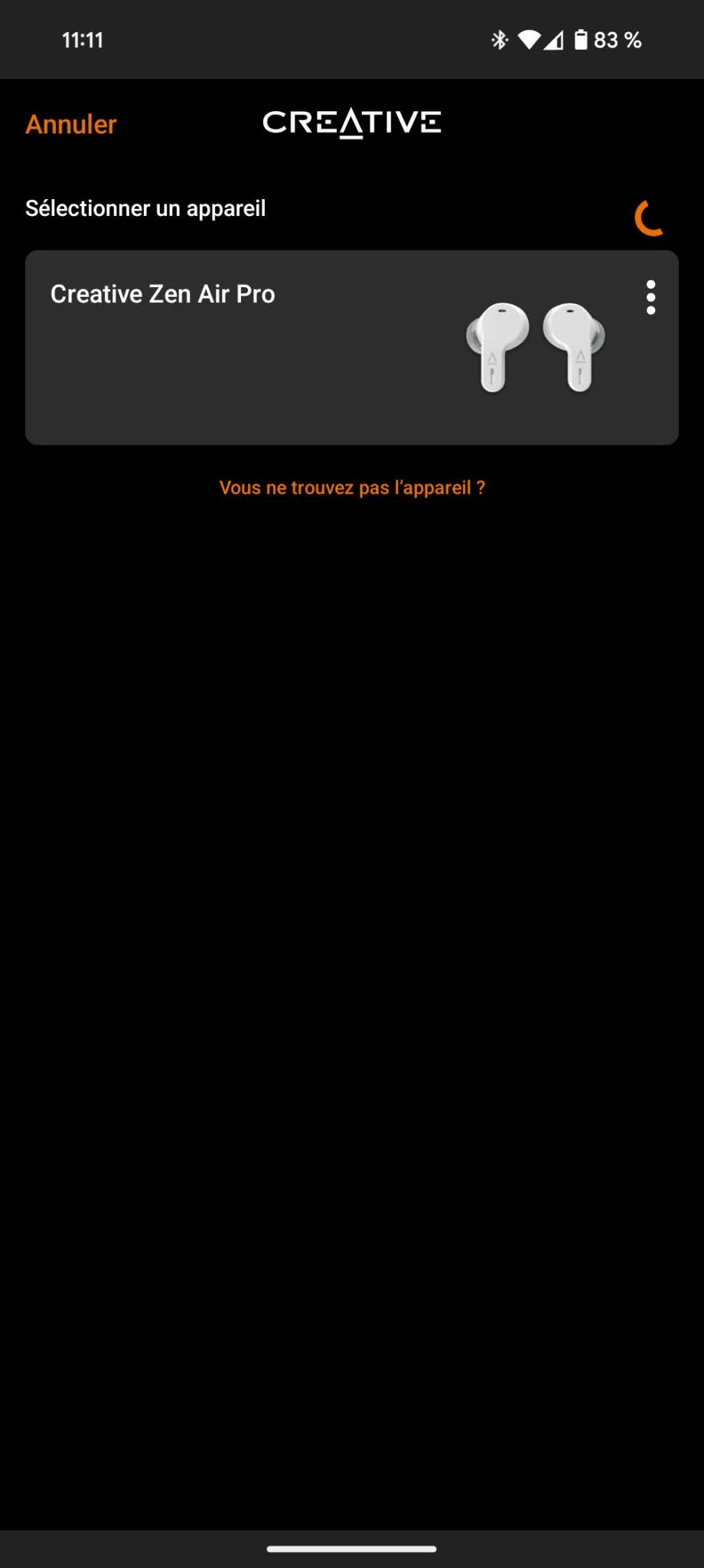 L’emballage s’ouvre sans difficulté, révélant un boîtier de charge compact mais au design plutôt sobre. Après avoir choisi les embouts en silicone qui me convenaient, j’ai ouvert le boîtier pour activer le jumelage automatique. Les Zen Air Pro sont apparus instantanément dans les options Bluetooth de mon smartphone. Une simple pression a suffi pour les connecter. Creative a même inclus une fonction de jumelage rapide rendant le processus encore plus simple.