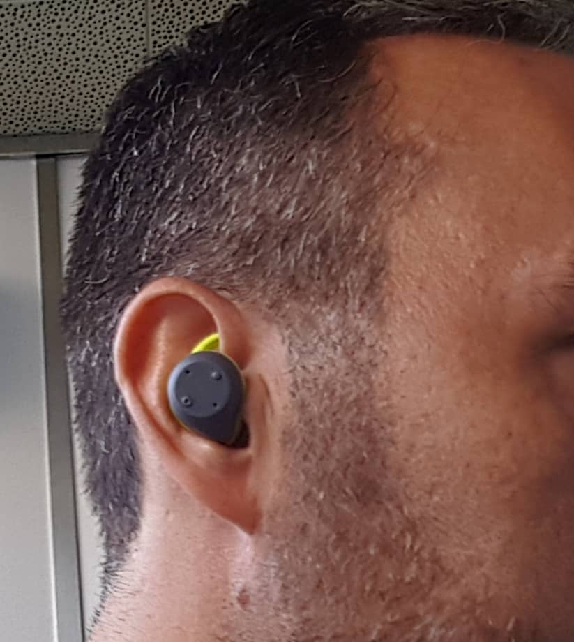 A noter qu’il faut savoir positionner les oreillettes dans le pavillon auriculaire. Il y a geste et une position à respecter pour qu’ils restent stables même en mouvement. Une fois la position trouvée, elle parait tellement évidente qu’on ne réfléchie plus et l’introduction se fait très rapidement.