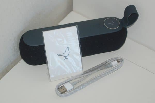 Premièrement, petit tour du propriétaire ! Quand on regarde la Libratone TOO on remarque directement les traits de famille de chez Libratone avec son mesh textile, et le fameux logo/bouton tactile.