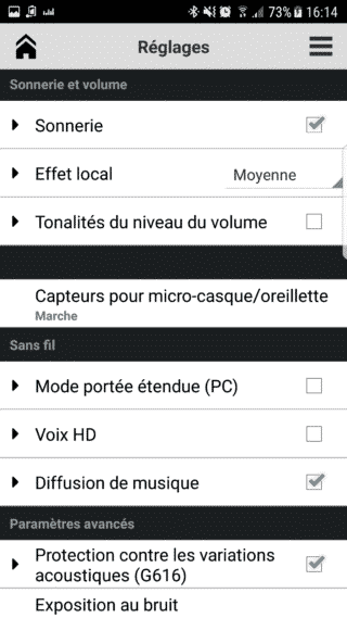 - En Téléphonie : J’ai un peu moins apprécié le son lors des conversations téléphoniques. Il existe néanmoins un mode Voix HD, activable par l’application, qui permet d’utiliser la large bande des fréquences et améliorer fortement la qualité au détriment de l’autonomie. L’opérateur doit toutefois prendre en charge cette fonctionnalité.