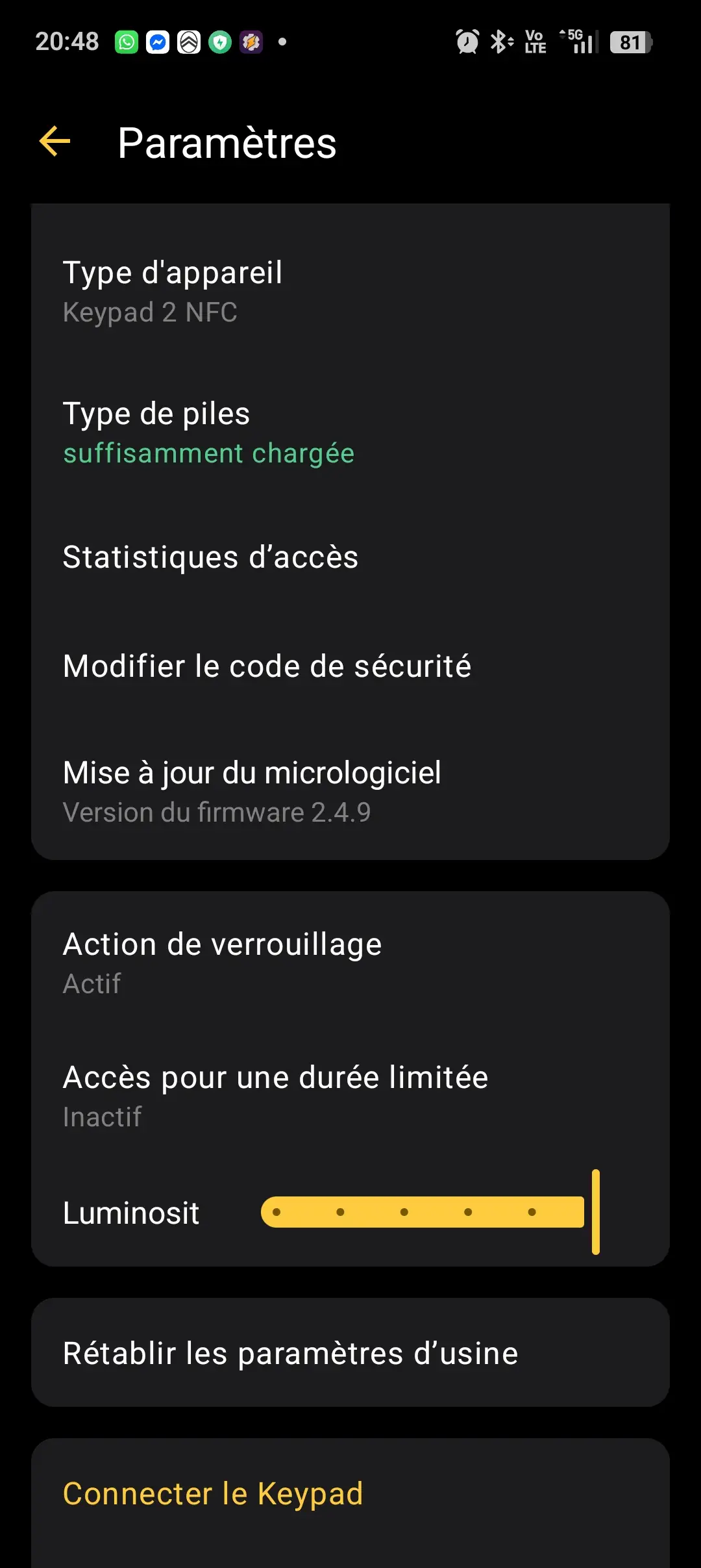 Il faut également noter qu’un firmware est actuellement en cours de déploiement permettant de déverrouiller la porte via NFC sans avoir à déverrouiller son smartphone au préalable. La fonction apparaît déjà dans l’application mais n’est pas encore activable pour le moment.
