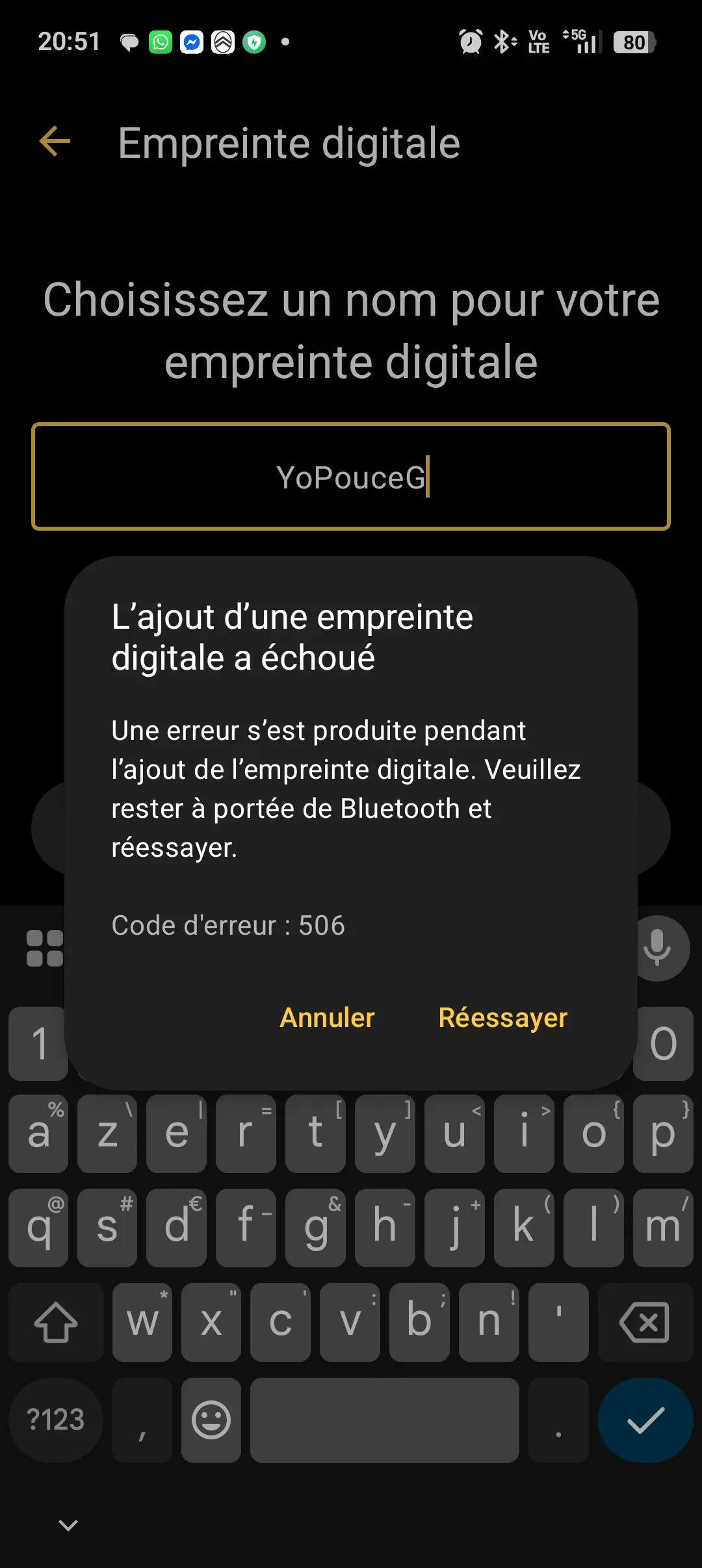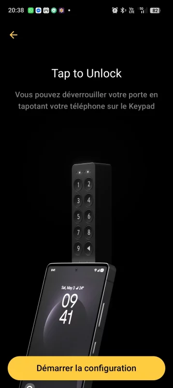 La procédure se déroule de manière très fluide. L’application détecte le clavier via Bluetooth et l’associe à la serrure existante.