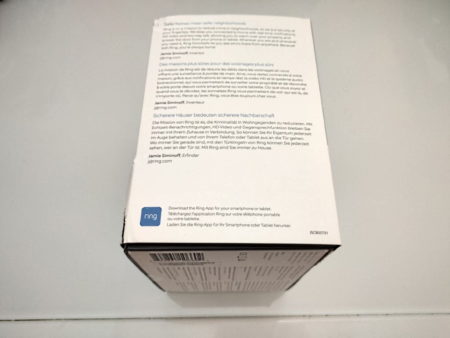 Sur le côté de la boite on peut lire que la mission de RING est de réduire les délits dans les voisinages en apportant une surveillance vidéo.