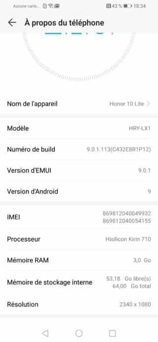 Pas non plus de recharge sans fil à l’horizon, probablement aussi pour réduire le budget au maximum, le Honor 10 lite ne cache pas son publique cible, un publique qui souhaite un téléphone moderne à budget serré.