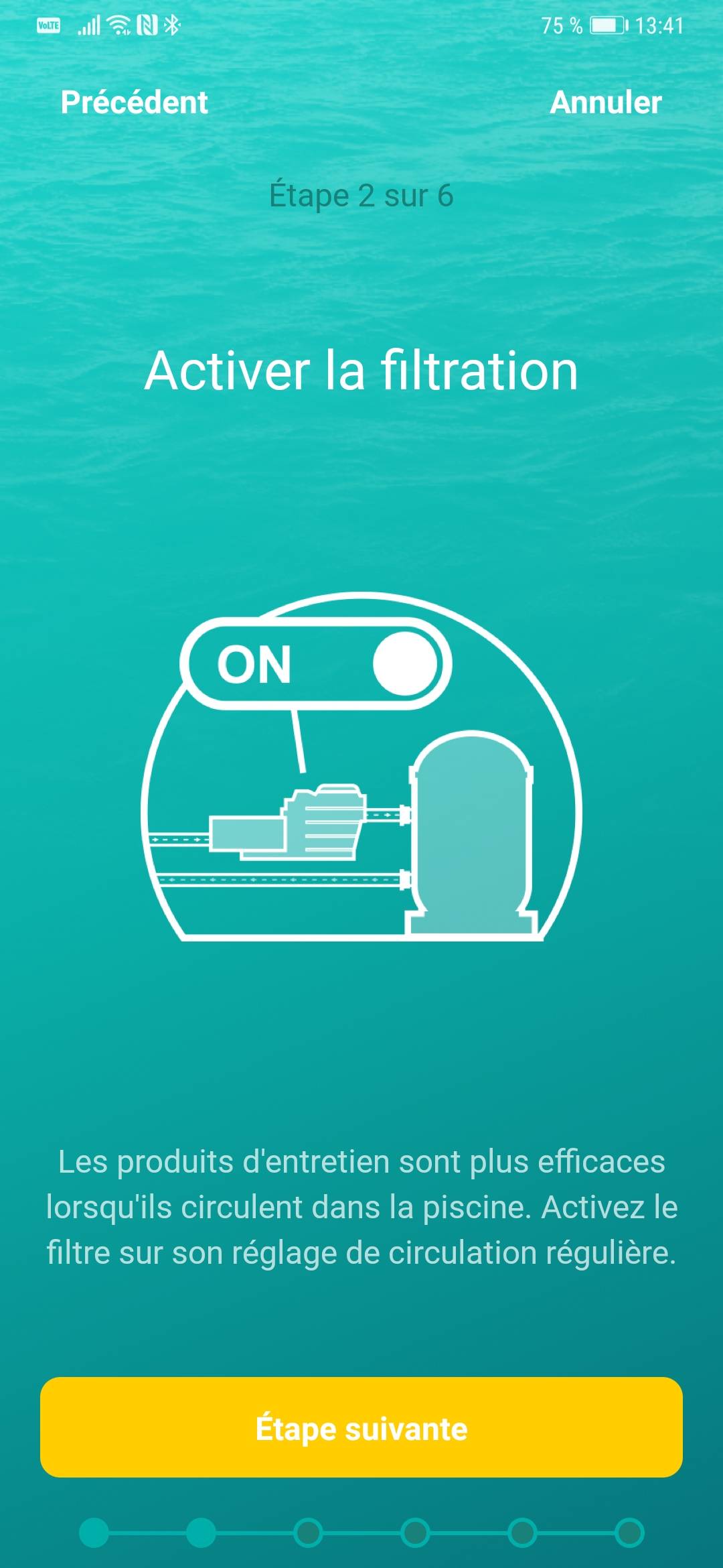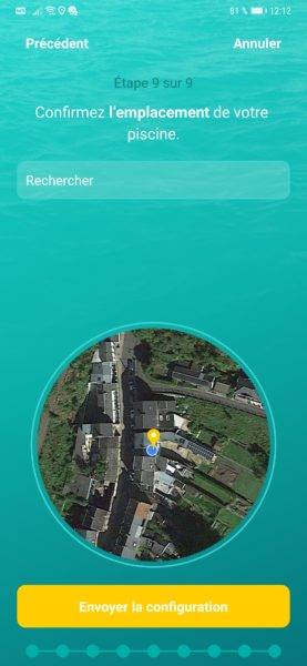 L’installation et la configuration de la sonde est relativement simple. De fait, on sent ici que le produit est destiné aux consommateurs lambda qui n’est pas forcément spécialiste en entretien de piscine. Bref, il suffit de suivre pas à pas les étapes de l’application: