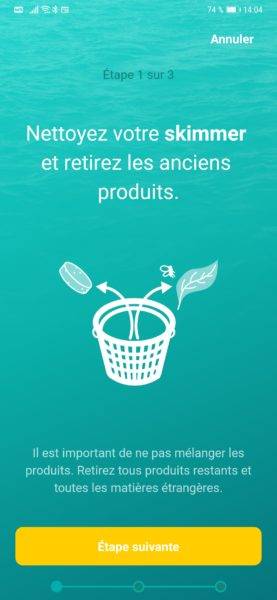 Pour ce qui est du traitement de la piscine, il se fait comme l’installation, vous êtes guidé pas à pas avec des conseils: