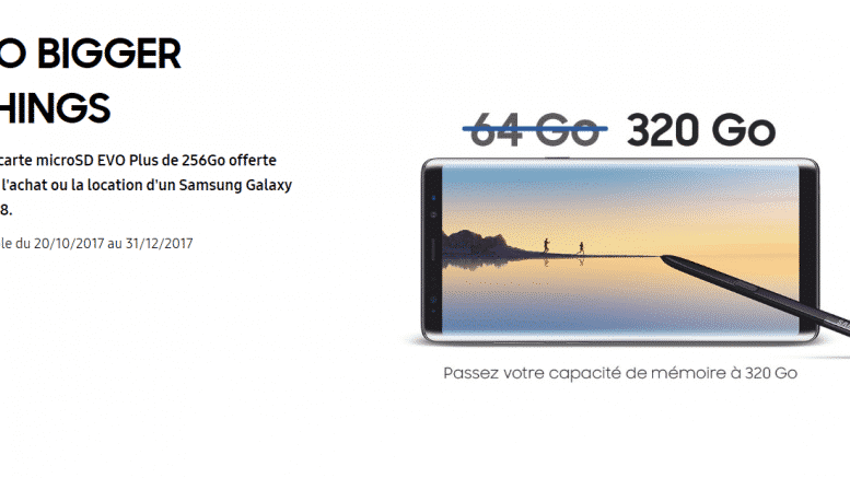 En effet, c’est le dernier jour aujourd’hui pour profiter de l’offre de Samsung pour tout achat d’un Galaxy Note8. Ainsi, si vous commandez encore aujourd’hui un Samsung Galaxy Note8 vous pourrez prétendre à la réception d’une Carte microSD EVO Plus de 256Go gratuite.