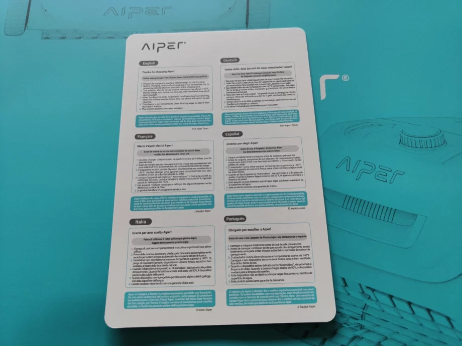 On notera que si souvent on retrouve une solution de type chenillard pour ce genre de produit. Aiper a opté pour 4 roues crantées en caoutchouc pour faire avancer son robot dans l’eau.