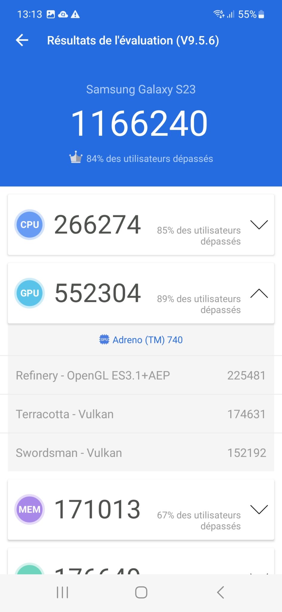 Pour commencer, nous allons tester notre Samsung Galaxy S23 avec différent benchmark.