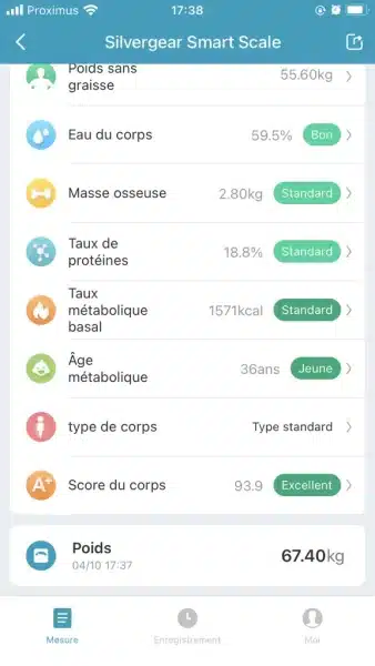Cette SilverGear Smart Scale est un très bon produit bon marché et de qualité qui fait le boulot pour lequel, il a été conçu. Très bonne première impression et pas de soucis constaté. L’appareil fonctionne avec des piles mais à ce prix-là, on ne pouvait pas s’attendre à avoir une batterie. Les informations sont relevantes et devraient satisfaire toutes personne soucieuse de perdre du poids mais surtout de la graisse plutôt que du muscle.