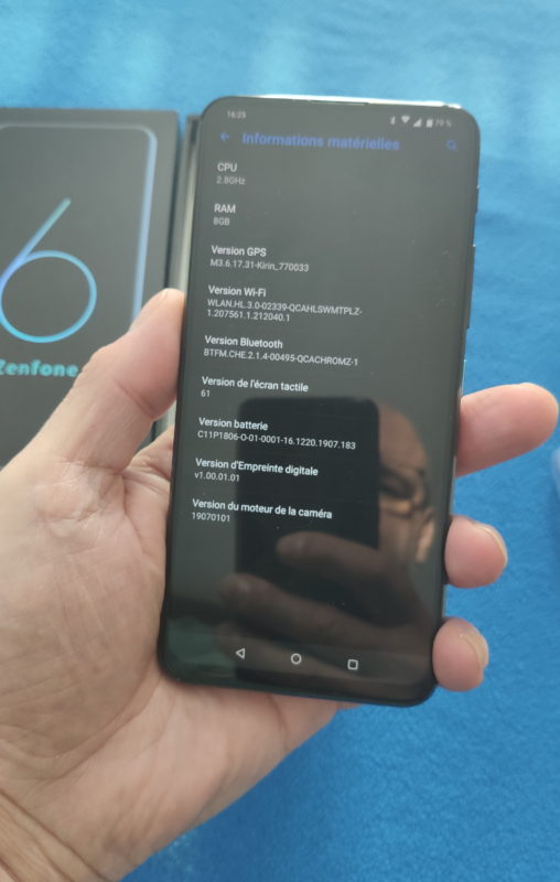 Le ZenFone 6 d’Asus est un smartphone haut de gamme abordable, sans compromis, sorti au printemps 2019. Le ZenFone 6 répond pleinement à la nouvelle tendance des smartphones, avec son écran réellement borderless ajoutant un ingénieux système de caméra à module rotatif qui peut basculer à 180°de l’arrière vers l’avant en quelques secondes.Ainsi vos selfies seront capturés par les 2 caméras principales qui se composent de deux capteurs : un IMX586 de 48 millions de pixels avec grand angle et un de 13 millions de pixels avec ultra grand angle.