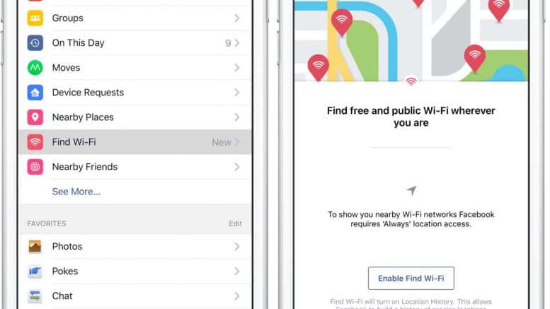 Le leader des réseaux sociaux vient d’annoncer l’intégration de son service « Find Wi-Fi ». Un service disponible pour tous les utilisateurs Facebook. Et ce, quel que soit le pays ou vous vous trouver. Ce service permet aux utilisateurs Facebook de trouver un réseau Wi-Fi gratuit sur lequel se connecter autour d’eux.