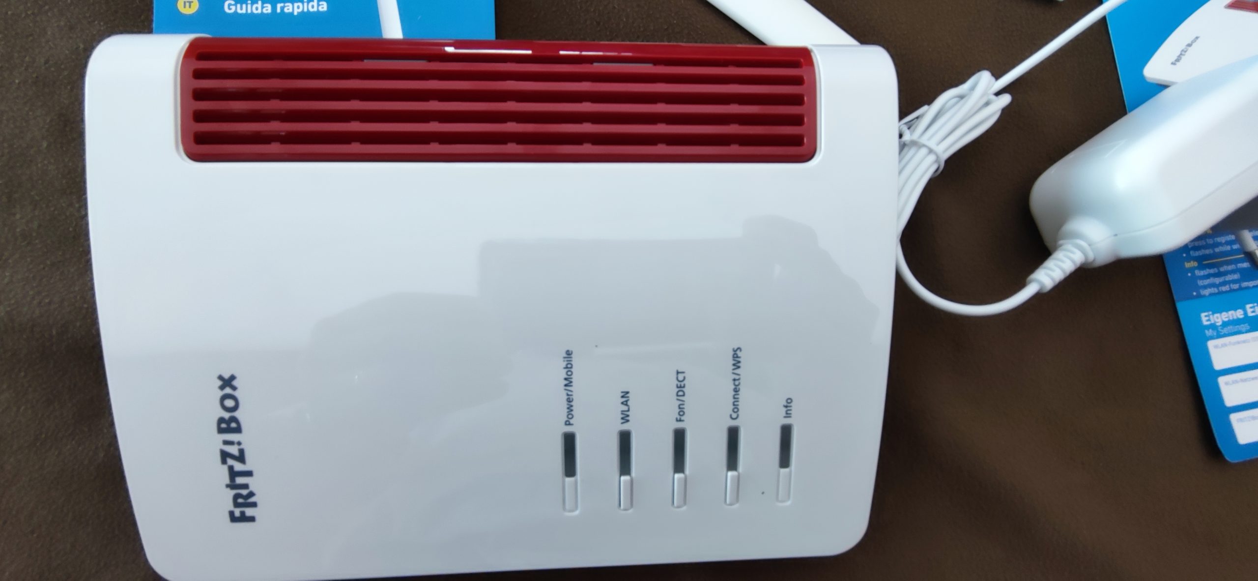Il y a cinq voyants à l’avant de la FRITZBox 6850 LTE pour indiquer l’état de fonctionnement. La LED Power / Mobile indique la qualité de la connexion du réseau cellulaire. Trois boutons pour WLAN, Fon / DECT et Connect / WPS permettent un accès rapide aux fonctions fréquentes. Si vous le souhaitez, la luminosité des LED peut être ajustée ou même complètement désactivée. Sur le côté de l’appareil, il y a une connexion USB 3.0 et une connexion téléphonique TAE pour un téléphone analogique.