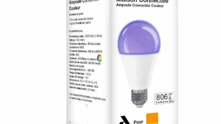 « Les ampoules, co-brandées AwoX et Orange pour mettre en lumière leur compatibilité avec le service de l’opérateur, seront distribuées au travers d’un réseau de plus 800 boutiques Orange en France et sur le site internet de l’opérateur. Les ampoules font partie d’un ensemble de produits, incluant une prise électrique, un détecteur de mouvement et un détecteur d’ouverture de porte.