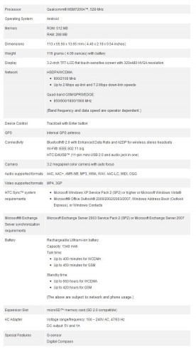 Au vu de ces spécifications, nous avons en main un engin qui nous laisse imaginer de très bonnes performances et une utilisation agréable. Les dimensions et le poids sont assez réduits pour un appareil de ce type. A peine 116 grammes batterie comprise pour le Magic ! Notons aussi la présence du GPS intégré et un appareil photo d’une résolution de 3,2 mégapixels. Au rayons des autres fonctionnalités, nous retrouvons les désormais habituels Bluetooth, le wifi aux normes b/g et un port pour carte micro SD. L’appareil est quadribandes et supporte le HSDPA.