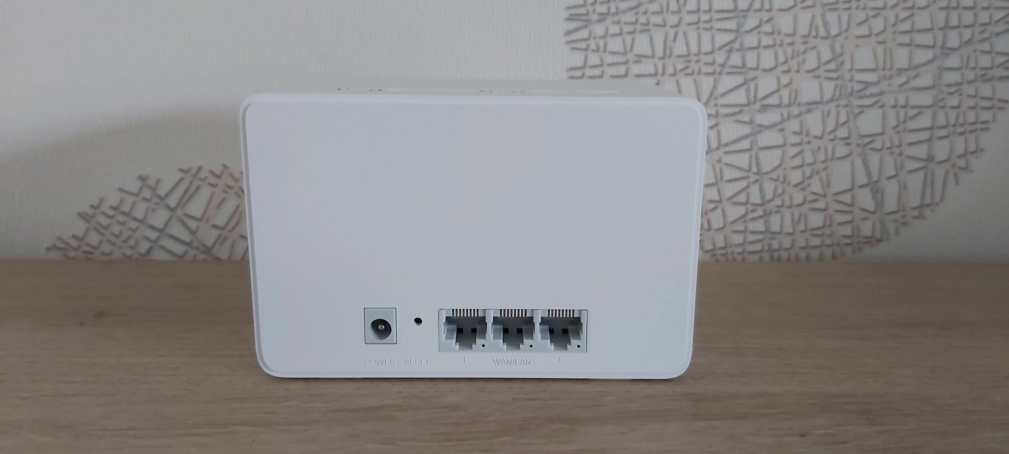La connectique se retrouve quant à elle sur l’arrière du produit avec trois ports Ethernet, la prise d’alimentation et le bouton réinitialisation vient d’insérer entre les deux. Les ports Ethernet sont auto négociée ce qui rendra l’installation facile, pas besoin de soucier du port dans lequel on viendra brancher le câble provenant de notre box internet.