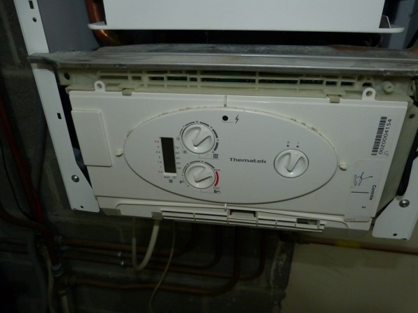 ![]() Ouverture du panneau de la chaudière pour venir raccorder la partie centrale. |