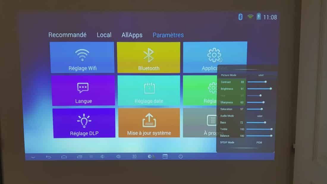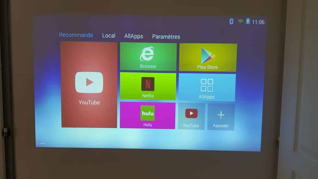 Ainsi, le système interne Android 4.4 KitKat du pico projecteur vous permet de profiter d’un grand choix d’applications du Playstore. Vous pouvez regarder YouTube, Netflix, Kodi, France TV etc.
