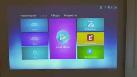 N’en demandons pas trop à ce projecteur qui ne sort que 350 Lumens. Ainsi, si vous chercher une meilleure image, il vous faudra de l’obscurité. Lors de la diffusion des fichiers multimédia, on peut utiliser un menu spécifique au type de fichiers lus. Que ce soit pour les vidéos ou les images et la musique.