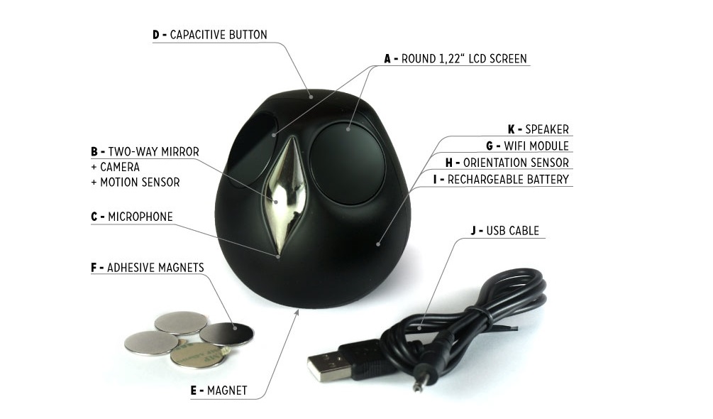 Par exemple il sera possible en cas de détection de mouvement d’Ulo d’allumer vos ampoules Philips Hue. La caméra (1080p HD / 30 fps) se trouve dans le bec miroir de Ulo. Elle est également équipée d’un micro et d’un bouton tactile.
